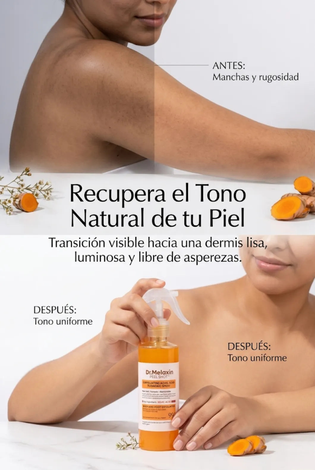 ✨ Aclara y unifica el tono: Reduce visiblemente las manchas en zonas oscuras como axilas, codos y rodillas gracias al poder del ácido kójico.